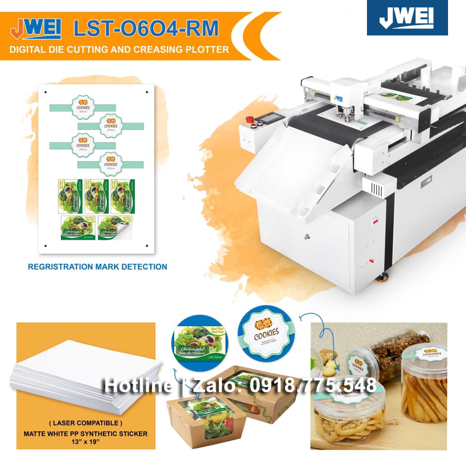 • Mã hiệu: JWEI LST-0604-RM (JWEI LST0604RM)• Xuất xứ: Thương hiệu Jingwei – Trung Quốc• Vùng cắt hiệu quả: Tối đa: 600 * 400 mm• Tốc độ cắt: tối đa 1000 mm/giây | Độ sâu cắt: Từ 0.1 – 1.5 mm (tùy tính chất)• Đầu công cụ: 03 đầu gồm dao cắt đứt – dao bế demi – đầu tạo nếp gấp• Hệ thống tải vật liệu: Tối đa 100 tờ (tùy độ dày)• Hệ thống cố định vật liệu: sử dụng hệ thống hút chân không• Ngôn ngữ cắt: Định dạng HP-GL, bộ nhớ 1 GB• Bảng điều khiển: Bộ truyền động servo kỹ thuật số, điều khiển với màn hình cảm ứng• Loại chất liệu cắt: decal các loại, film PET, tấm PVC, mút xốp, decal trong, bìa giấy, decal chuyển nhiệt, decal phản quang, decal cao tầng…• Kết nối: Qua mạng LAN Ethernet• Kích thước máy: 1150 * 900 * 850 mm, nặng 200 kg• Nguồn điện: AC 220V +/- 10%, 50HZ / 60HZ